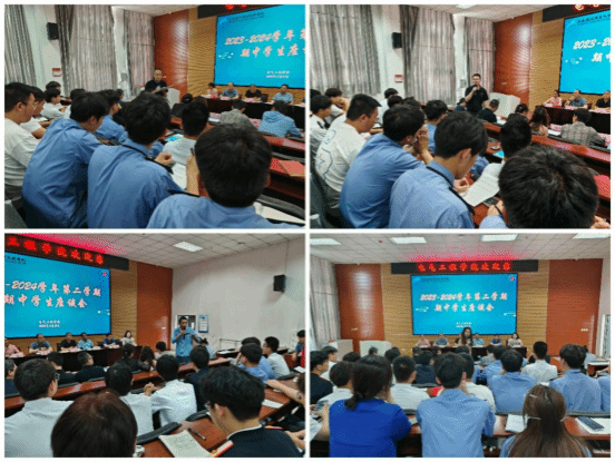 为充分了解学院教学过程实际情况,进一步提高教学质量,助力学生成长成才,5月15日在教学楼101阶梯教室召开了2023至2024学年第二学期期中教学检查学生座谈会。院长王公强、党总支书记喻朝晖、副院长宋永兴、学工办主任马纪、办公室董燕及各教研室主任、副主任和30个班级的学生代表参会交流,学校发展规划处、教务处、基础部、马克思主义学院教师及干部代表参加。会议由办公室副主任闫丽芳主持。