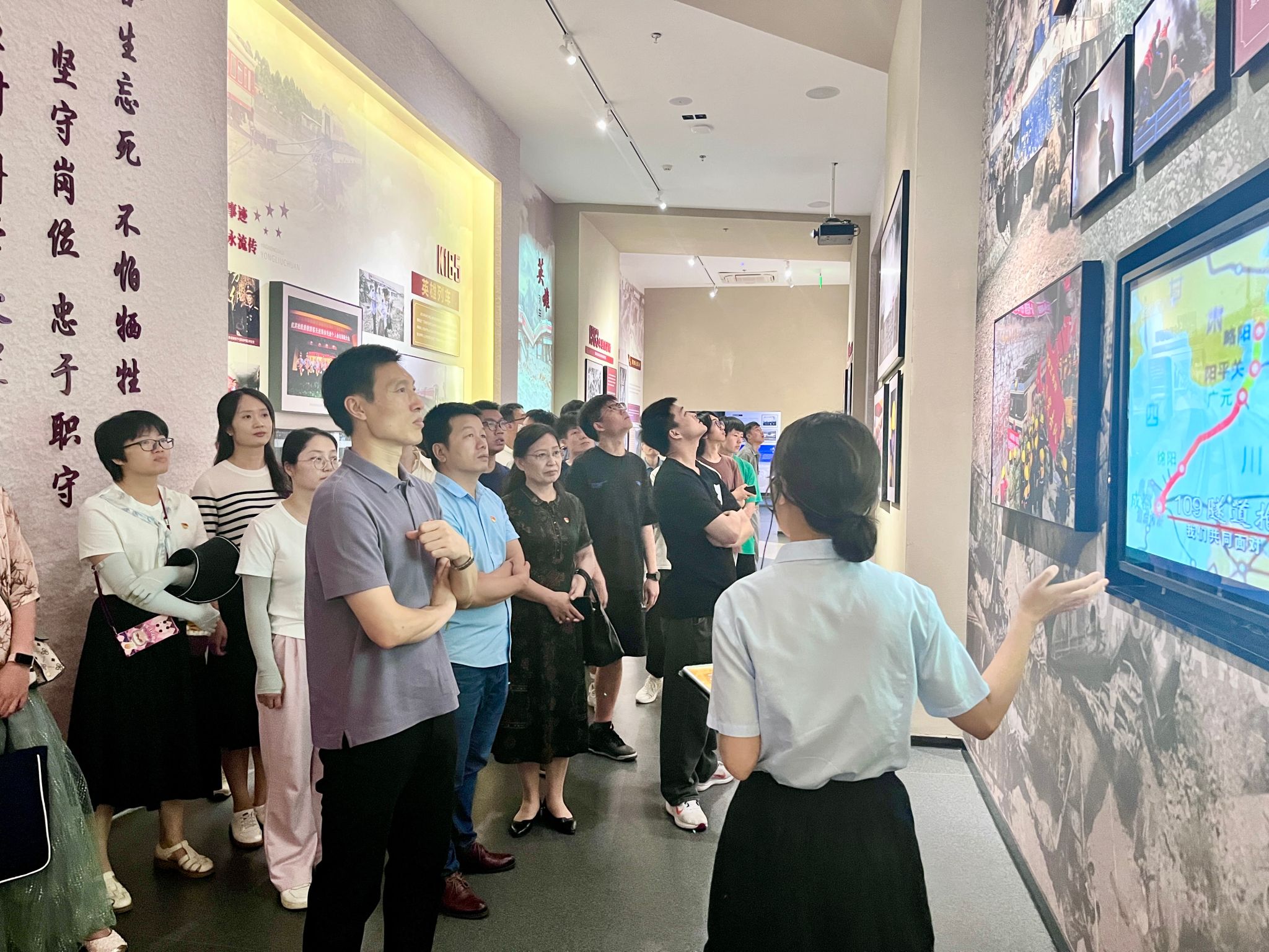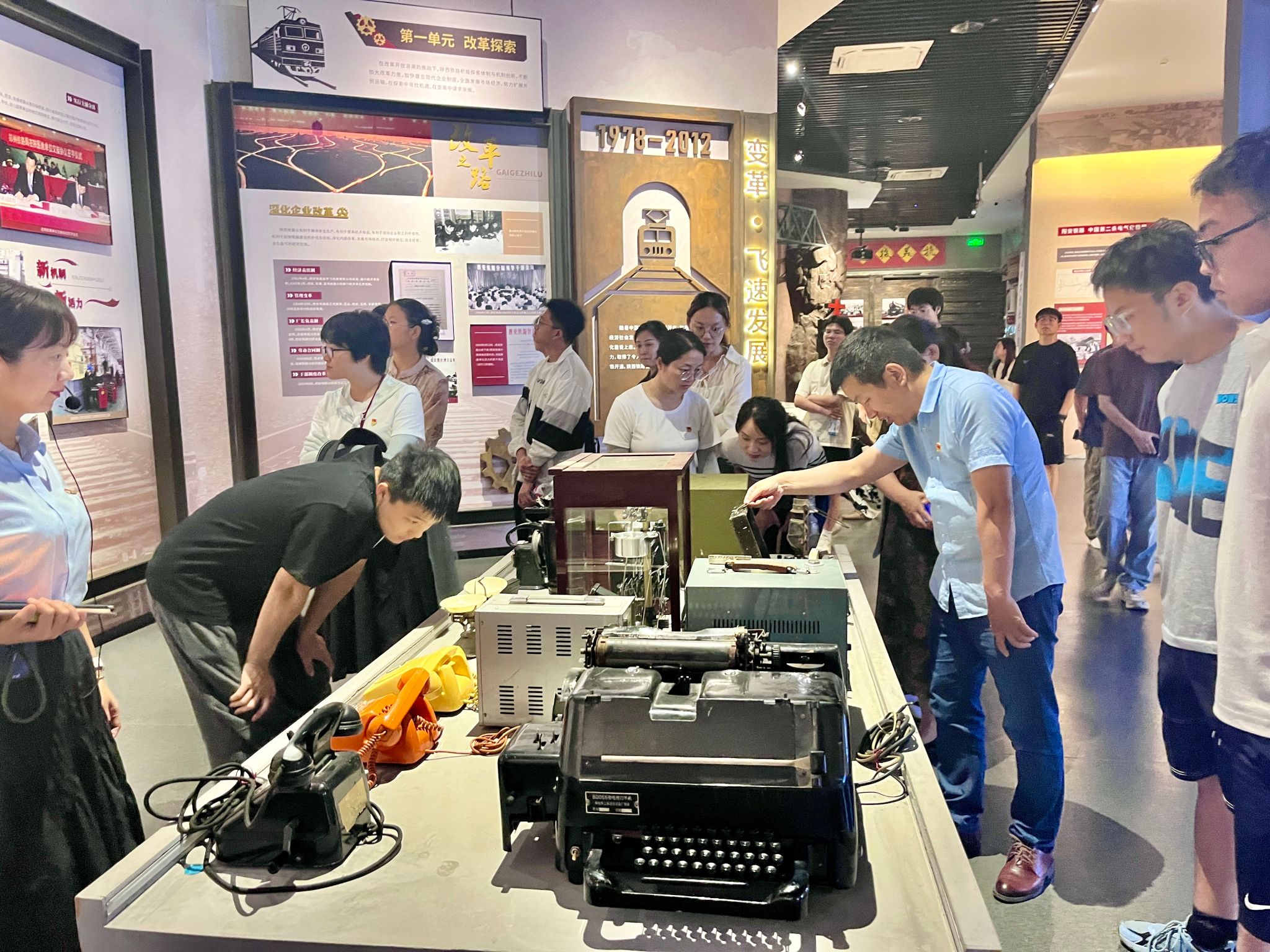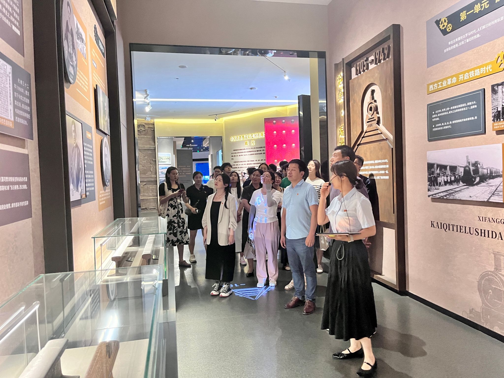 师生们在馆前观看了陕西铁路发展历程主题纪录片,随后,陈列馆大门徐徐打开,大家跟随讲解员一同进入陕西铁路陈列馆内。
