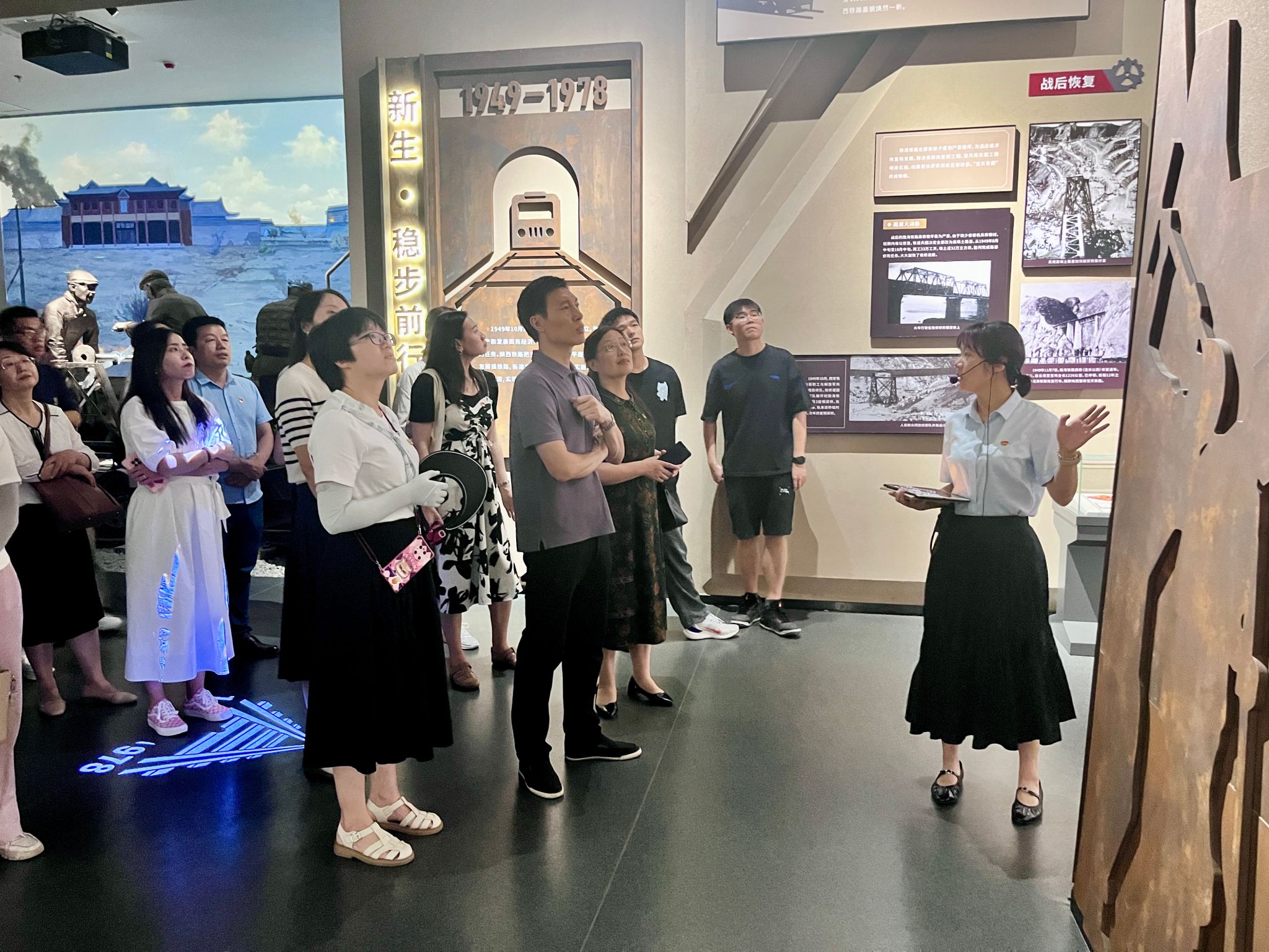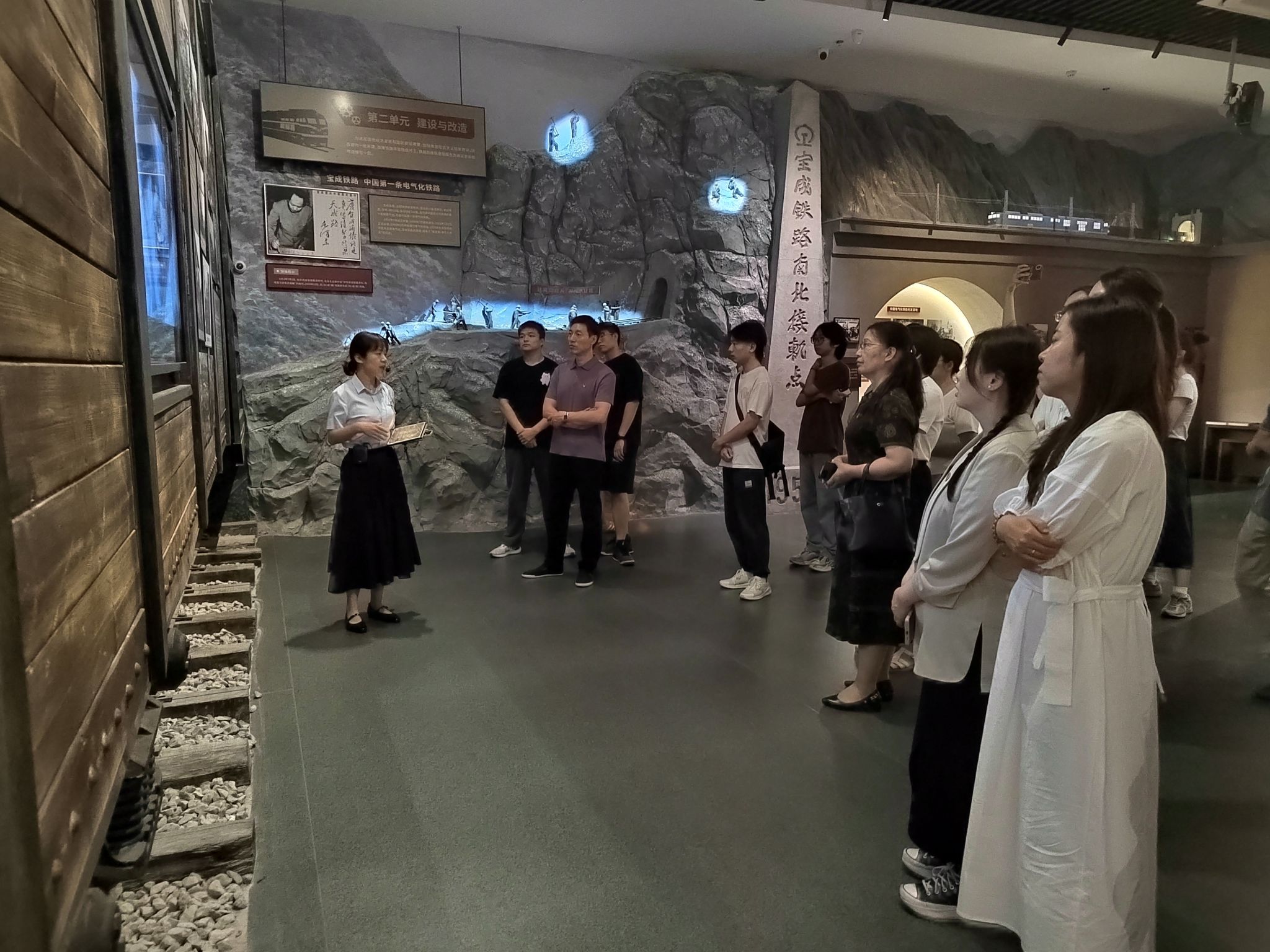 师生们通过生动的展览和详细的解说,直观地了解到陕西铁路发展的各个历史阶段。从宝成铁路到襄渝铁路,再到中欧班列,展馆内的历史文物和修建的模拟场景生动地讲述了铁路如何成为连接城市、促进区域经济发展的重要纽带。师生们在馆内学习了陕西铁路的发展历程,也明确了铁路人的使命与担当。