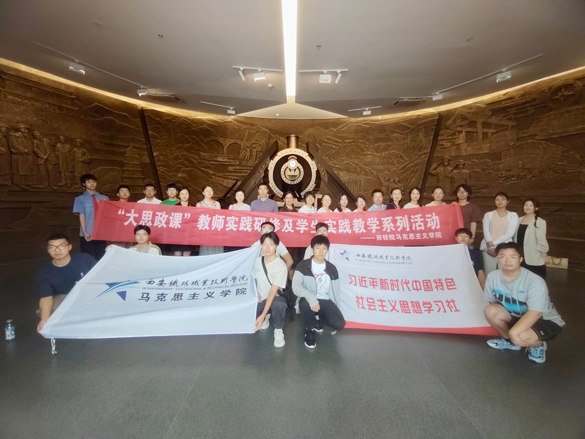 参观结束,马克思主义学院部分教师及“新时代学习社”学员代表在陕西铁路陈列馆前合影留念。