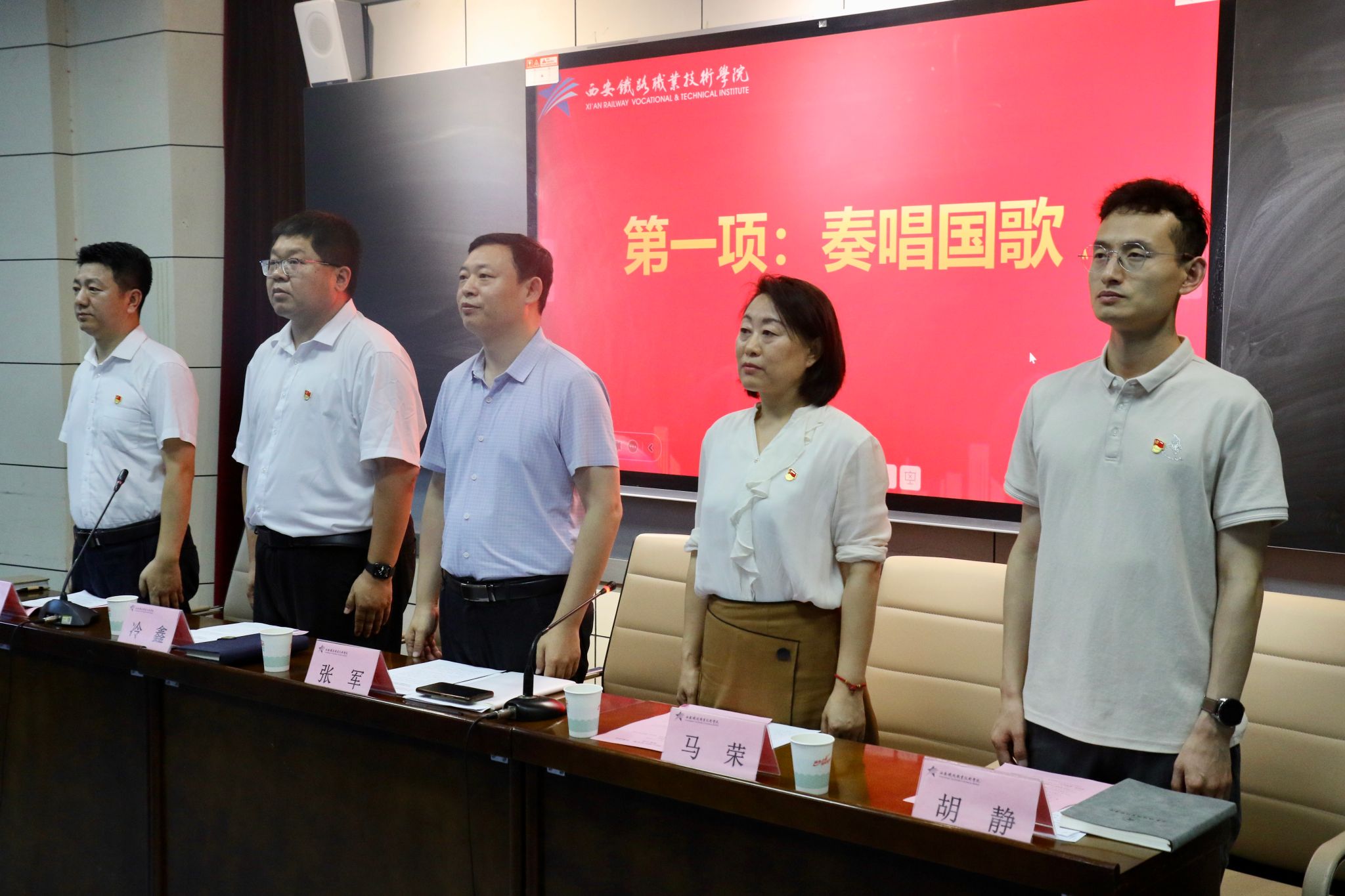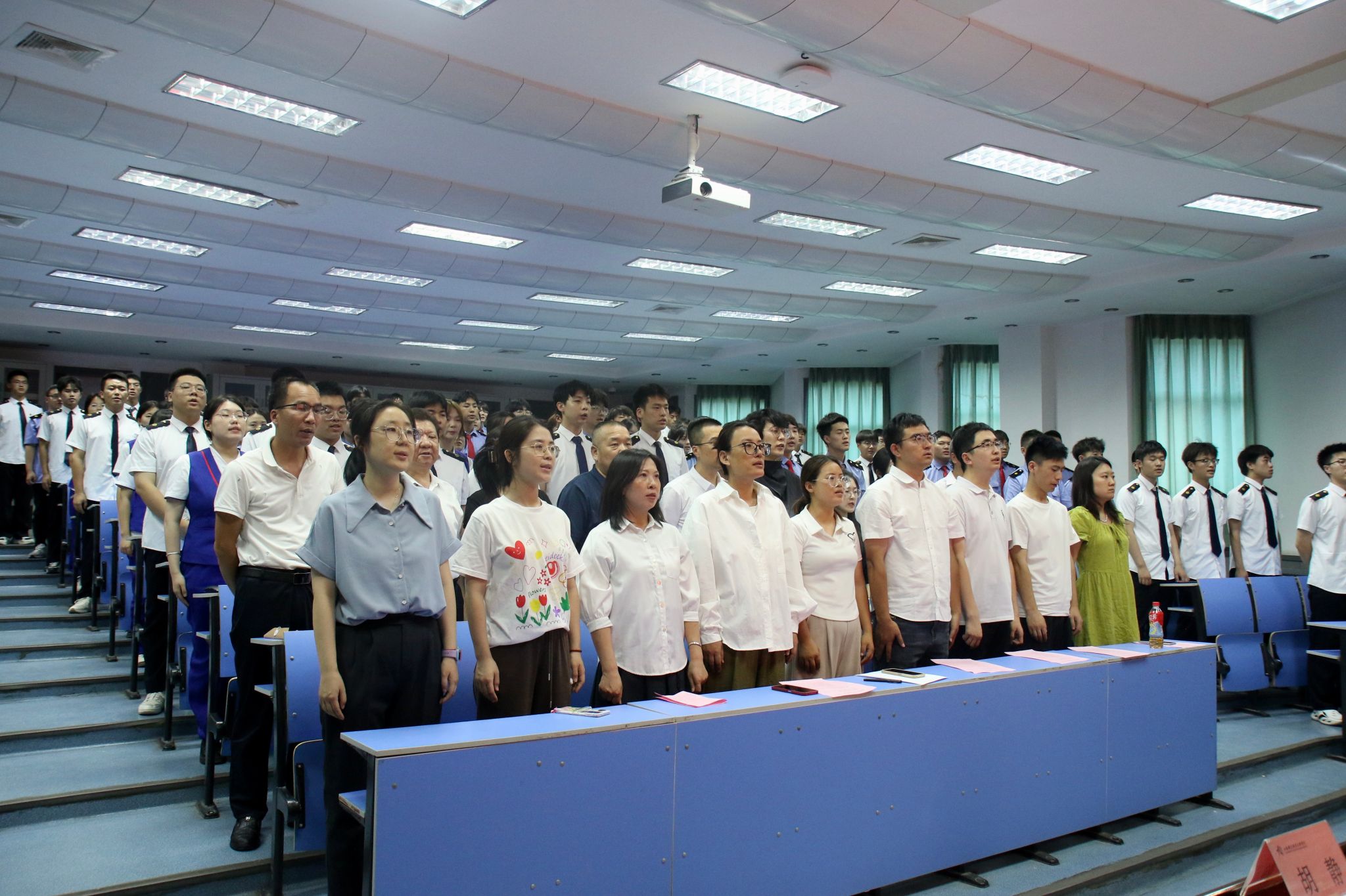 大会在庄严的国歌声中拉开帷幕,全体起来,奏唱国歌。随后,主持人介绍参会领导及师生。