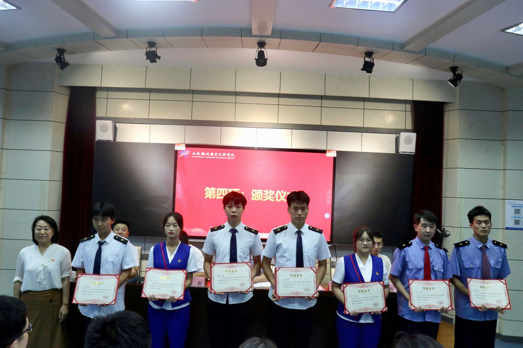大会第四项,颁奖仪式。张军主任首先为“文明班级体”“优秀班集体”的班主任代表颁发奖牌,获奖教师代表惠甲、杨永超等人上台领奖。校区党委副书记马荣、副主任冷鑫以及团委副书记胡静分别对“文明个人”“综合素质之星”“三好学生”“优秀干部”“双十”以“五四青年标兵”“优秀共青团干部”等获奖学生代表颁奖。