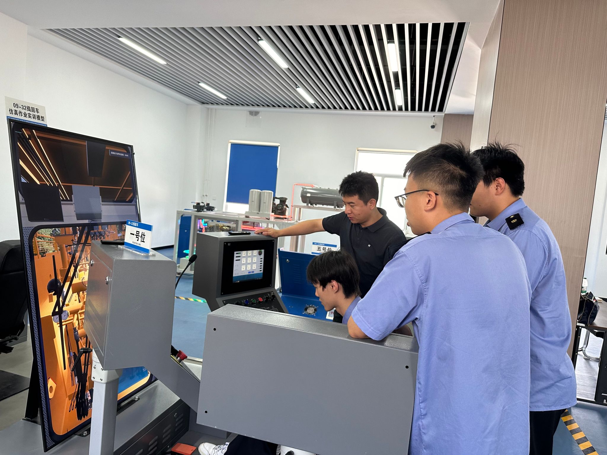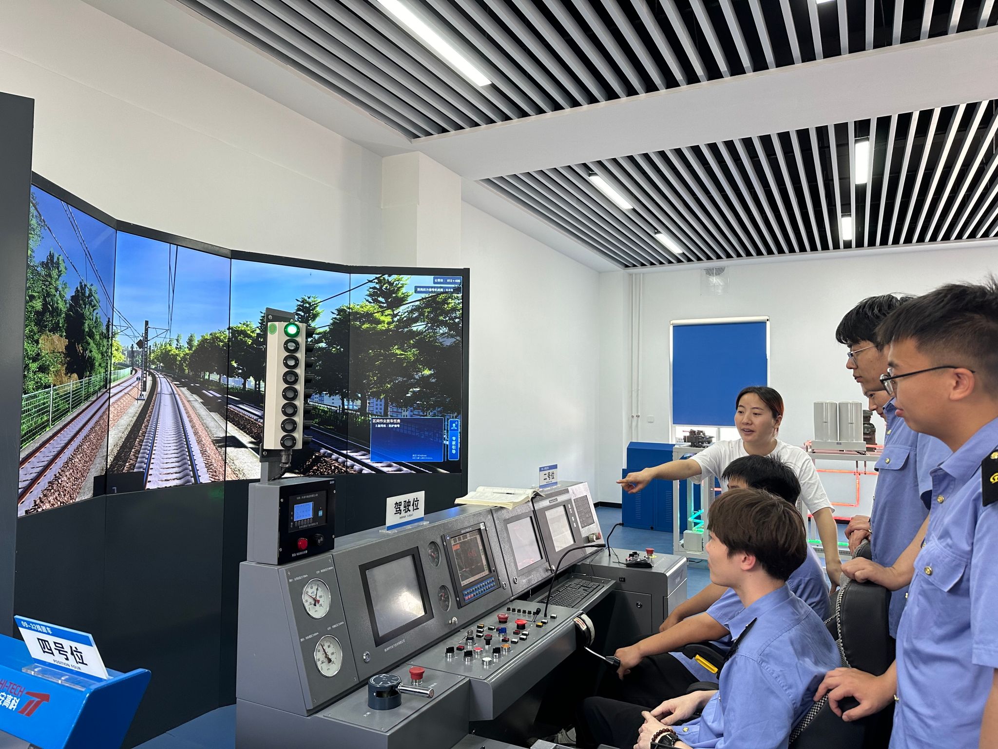 D09-32型捣固车虚拟仿真实训室包括有09型捣固车5个工作操作位、YZ-1型空气制动机等实验设备,可在其进行大型养路机械的模拟驾驶、应急故障处理、非正常行车、整备检查和标准化作业等练习和考核。