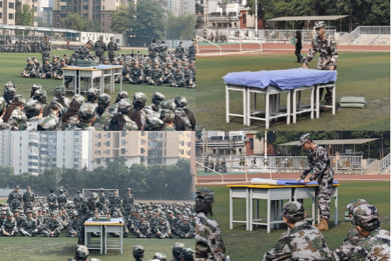 俗话说得好:“出门看队伍,进门看内务。”整理内务是军训期间的一门“必修课”。教官们细致地向同学们展示了如何正确折叠军被,并传授了叠军被的关键步骤——“压、量、切、塞、抠、修”。