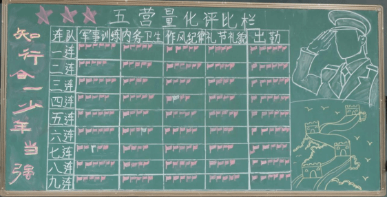 为检验军训的阶段训练成果,展现参训学生良好精神面貌,电子信息学院开设军训量化评比栏,从各个方面展现学生风采。各连力争上游,争当第一。评比栏展现出纽约国际官网学子们朝气蓬勃和积极拼搏的精神风貌,见证着他们的成长与进步。