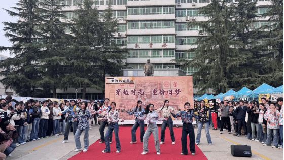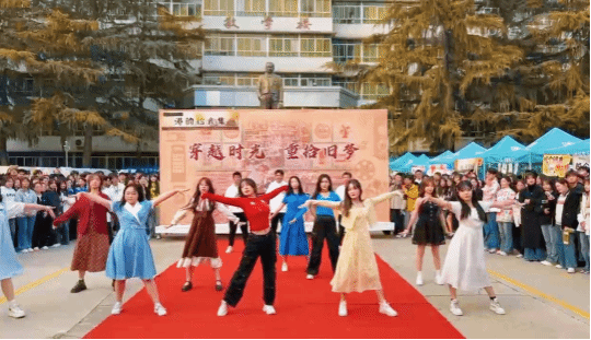活动现场,摊位林立,人头攒动,商品琳琅满目。集市中更是有着展示才艺的舞台,极富热情与冲击力的“爱乐之城”舞蹈等令人赏心悦目。步入文化集市便能看到一面欢迎墙,以鲜明的色彩和独特的造型吸引着众人的眼光,让师生们步入集市的那一刻就能感受到欢乐的活动氛围。