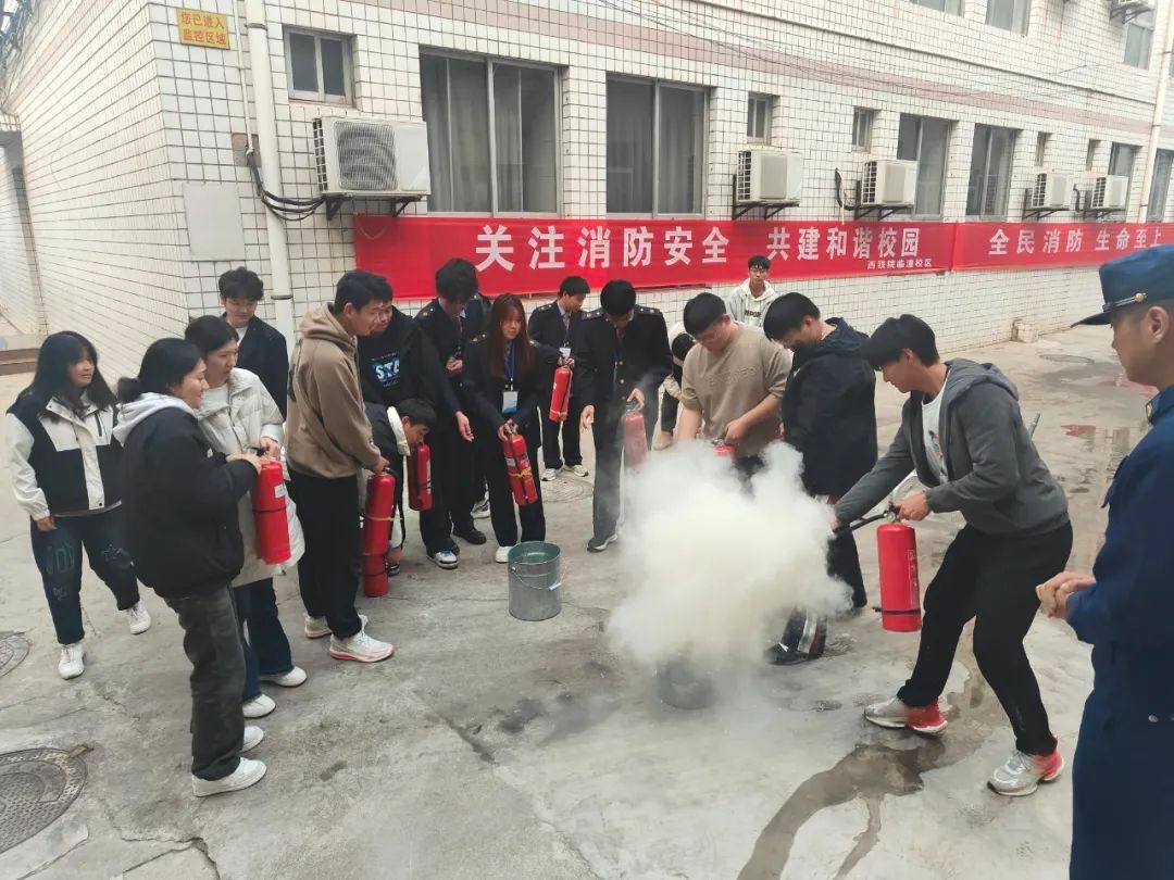 在第33个全国消防日来临之际,为了进一步增强校区师生消防安全意识,提高防火救灾能力,11月7日下午,临潼校区开展消防安全演练活动,校区党总支副书记马荣、各科室负责人以及伙食科、总务科工作人员、学生代表等100余人参加了此次活动。为确保演练的专业性,校区特别邀请区公安局骊山派出所刘银平、冯小建警官、消防救援大队干警任波以及西铁社区副主任程洁指导消防安全演练活动。