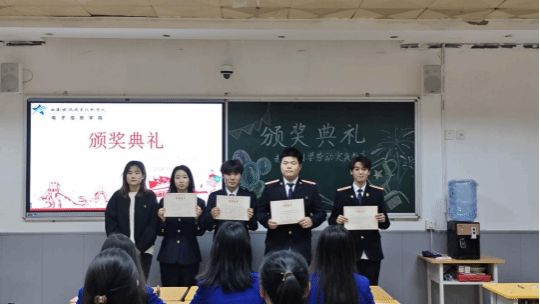 颁奖典礼第二项,由姚景妍给参加本次迎新晚会中绮丽的《古韵华服》汉服表演的同学颁发院党委学生部、院团委印发的荣誉证书“最佳表演奖”以兹鼓励。