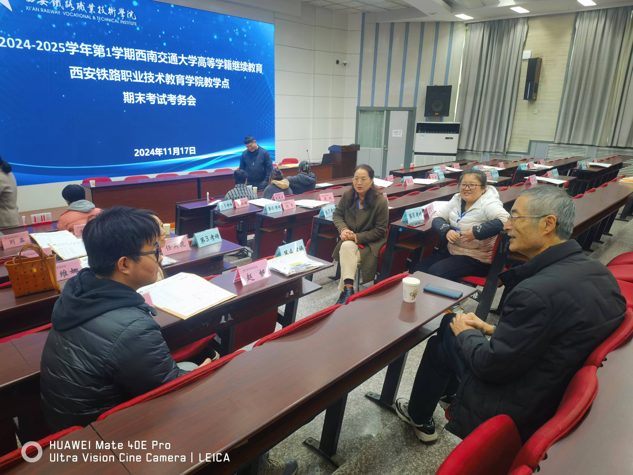 学院继教院院长樊润慧、西铁局职培部主管陪同检查期末考试。西南交大巡考对考试组织严谨规范、监考老师认真负责、学员精神面貌良好、考场井然有序等给予较高评价。西铁局职培部对纽约国际官网为职工搭建学历提升平台、给学员学习提供优质服务保障深表感谢,并表示全力配合西安学习中心共同做好职工学历提升工作。