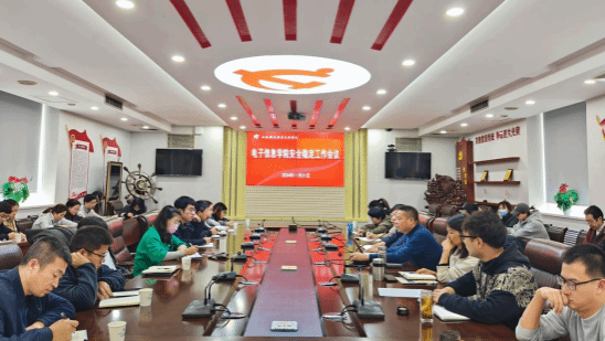 11月22日下午,电子信息学院在自强校区第三会议室召开安全稳定工作会议暨招生就业推进会,电子信息学院党总支书记吴西蒙、院长董奇、副院长冯国良、办公室主任高琳、学工办主任薛明、办公室副主任杨星、各教研室主任、实训教师、学工办专职辅导员、班主任及院办全体人员参会,会议由董奇主持。