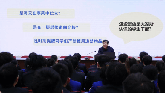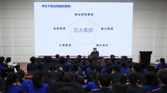 随后,吴西蒙提出了学生干部应具备的五大核心能力“政治思想素质、业务素质、能力素质、团队意识、心理素质”。他引用往届优秀学生干部的实际事例,详细解读了如何应对工作中的挑战,并与学生干部们分享了如何在团队合作中发挥领导力、凝聚力的宝贵经验。