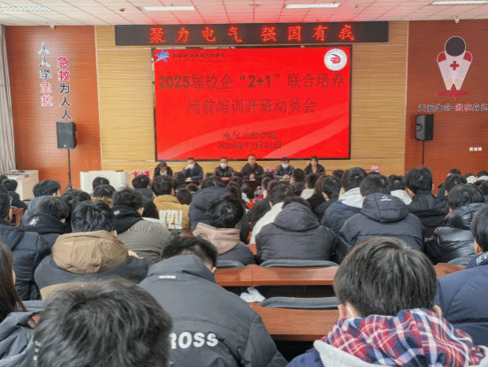 12月24日上午,电气工程学院在101阶梯教室成功召开2025届校企“2 + 1”联合培养岗前培训开班动员大会。会议旨在为即将进入培训阶段的学生们提供明确的指导方向,同时强化安全意识,确保岗前培训工作顺利开展。学院领导高度重视,院长王公强、副院长宋永兴、办公室主任董燕、学工办主任马纪出席,2025届中国铁路西安局预录取的学生参加,会议由办公室副主任闫丽芳主持。