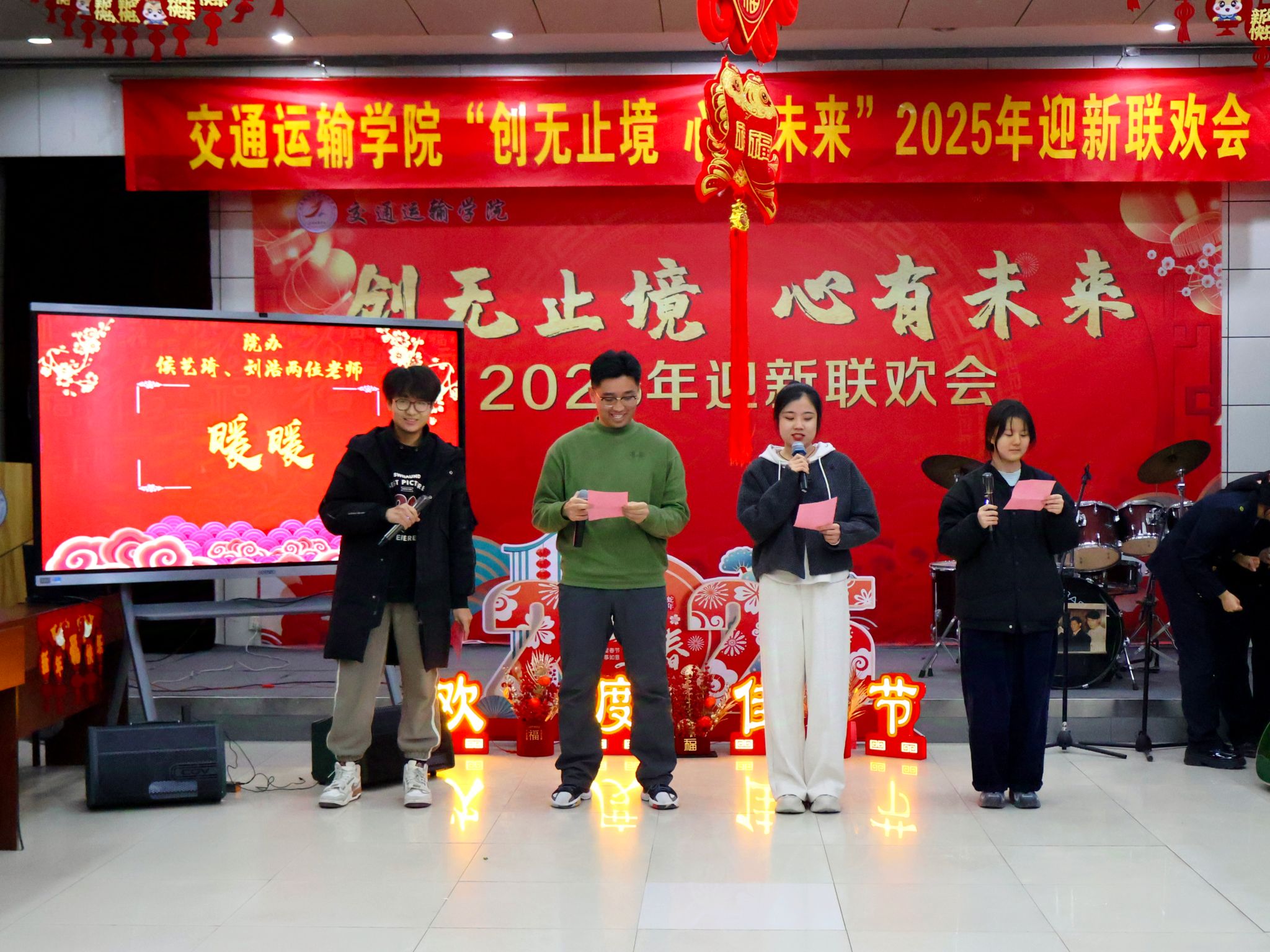 在这辞旧迎新的美好时刻,为加强教职工间的交流与互动,增强团队凝聚力,12月27日下午,交通运输学院在自强校区大电教举办了“创无止境,心有未来”2025年迎新联欢会。交通运输学院全体教职工及自强校区各部门代表参加了此次活动。