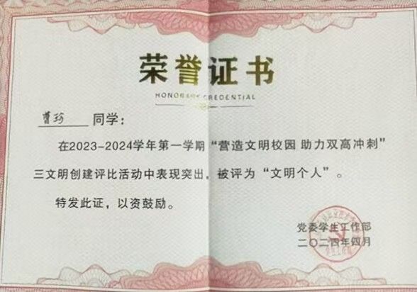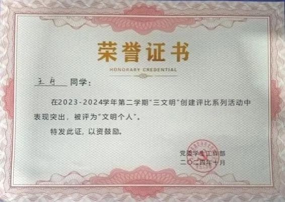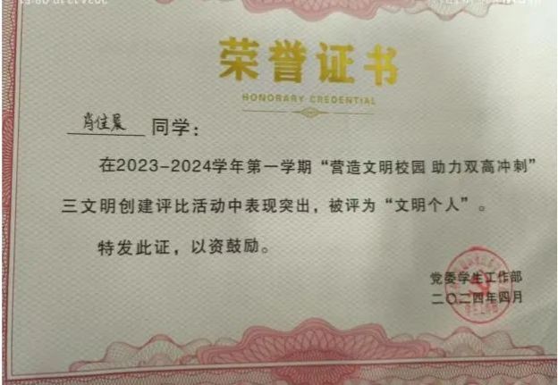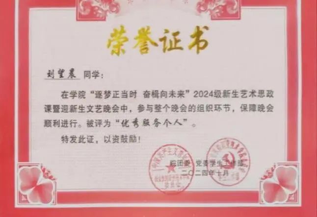 青春盛世,这次获奖,我感到非常荣幸和激动。这不仅是对我个人努力的认可,更是对我所在团队辛勤付出的肯定。在准备过程中,我学到了很多新知识,也遇到了不少挑战,但正是这些经历让我成长了许多。我会珍惜这份荣誉,继续保持积极向上的态度,不断提升自己的能力。