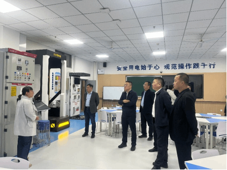交流会开始之前,中铁七局电务公司一行参观了室外综合演练场,专业教师向大家详细介绍了接触网室外演练场的整体布局、功能分区以及主要设备的技术参数。教师提到,这个演练场是学院为了让学生能够更直观、更深入地了解和掌握接触网相关知识与技能而专门建设的,在这里学生们可以进行接触网的安装、调试、检修等一系列实操训练。随后来的了安全用电实训室,教师详细讲解了实训室中的各类模拟装置。通过这些模拟装置,学生们可以亲身体验和学习安全用电的操作规范,以及在不同场景下应对电气故障和安全隐患的方法。