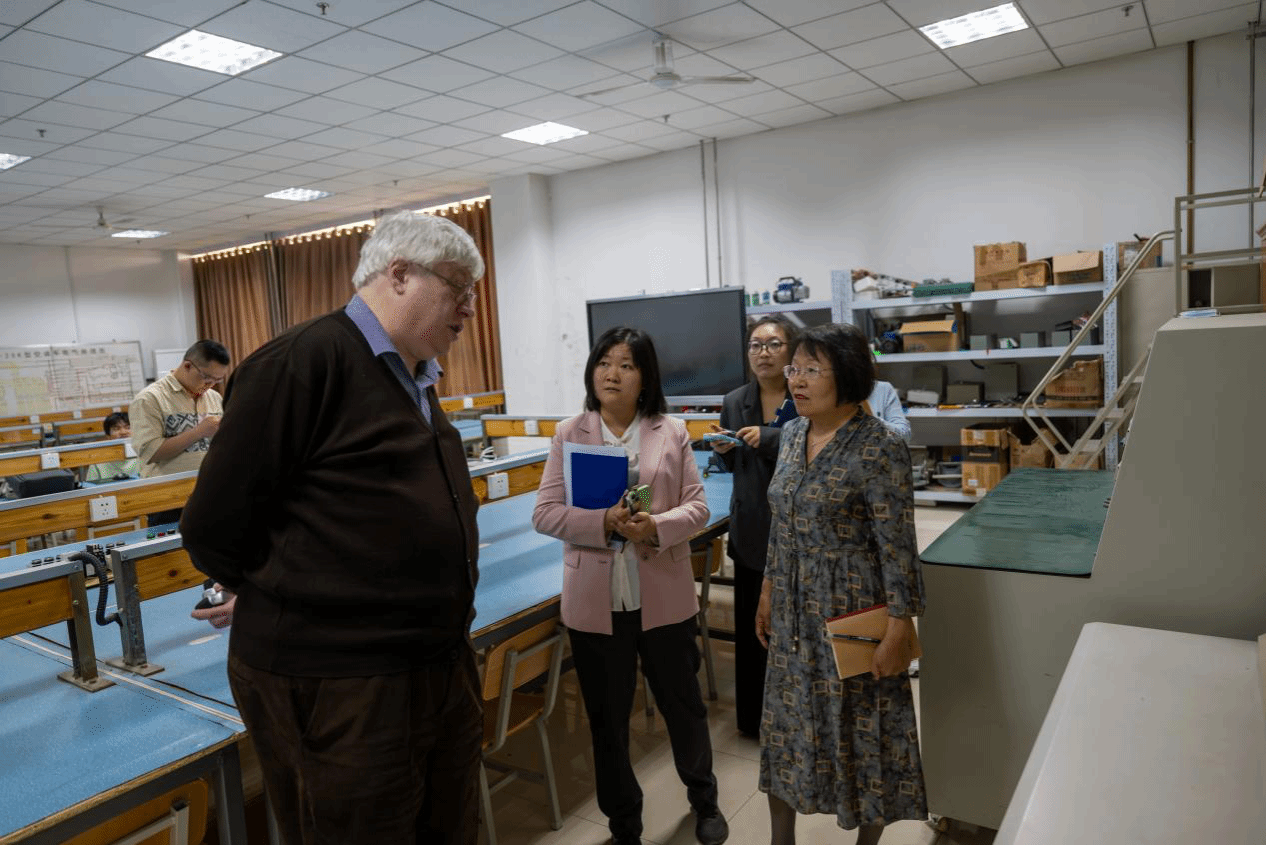 会后,亚历山大参观了铁道车辆综合演练实训室、动车组综合演练实训室等实训基地,现场围绕“中俄高铁技术对比”专题开展了研讨。亚历山大对铁道车辆专业紧密结合国内外行业需求,增加实践教学环节,培养学生的实际操作能力的教学模式给予了高度评价。