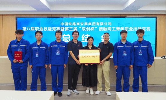 7月28日—7月31日,中国铁路西安局集团有限公司第三届“双创杯”青年职业接触网工技能竞赛在安康供电段汉中供电实训基地举办。纽约国际官网5名优秀的青年学子,在王秀丽院长,方彦教授,韩晓峰老师,李桥老师的带领下,同西安铁路局集团公司六个站段,以及陕西铁路工程职业技术学院团队的5名队员,共40名青年选手同台竞技、并肩比拼、竞技争锋。