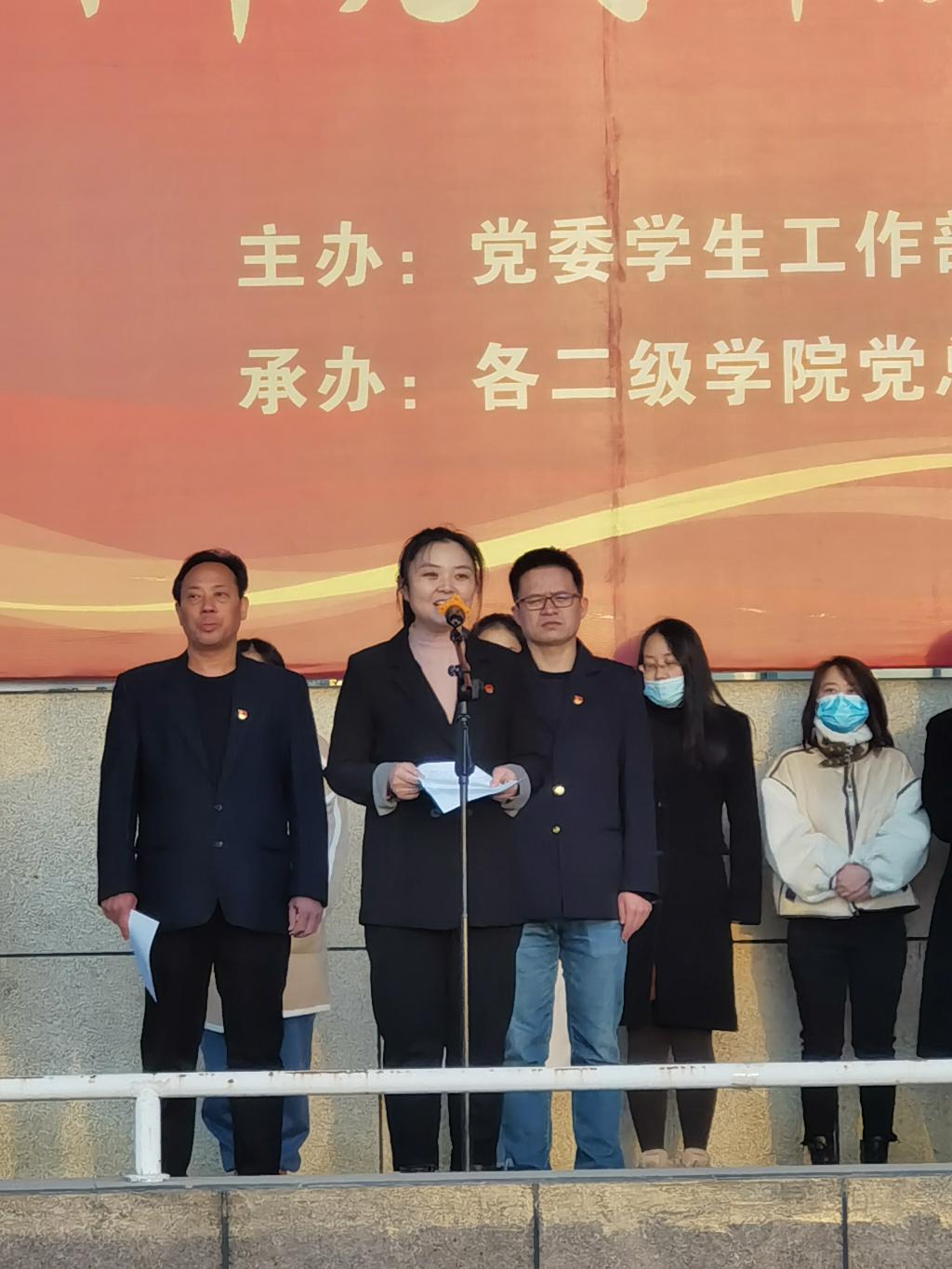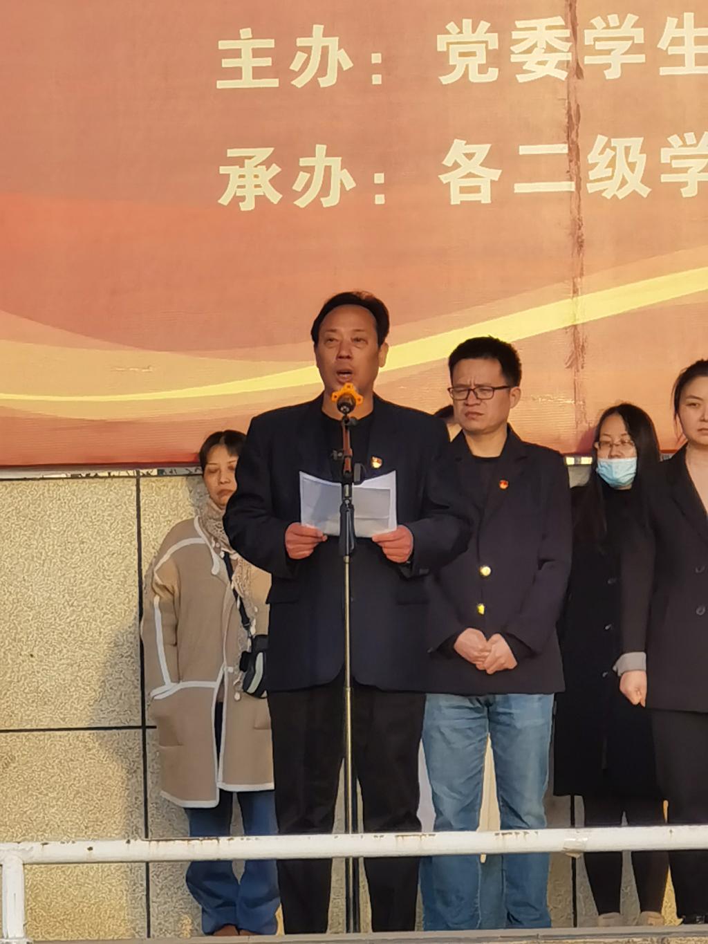 为深入贯彻落实习近平总书记在党史学习教育动员大会上的讲话精神,学院举行了“讲百年党史辉煌 筑民族复兴梦想”系列国旗下讲党史活动。按照学院党委、学工部、院团委的统一安排部署,3月22日早上7点,牵引动力学院开展了国旗下的党史课《井冈山:星火燎原的红色记忆》活动。学院党委学生工作部部长郭小莉、牵引动力学院院长李益民、副院长林辉以及院办主任肖贤、学工办主任陈广勇、正科级督导员王智敏、马克思主义学院张赪老师和学工办全体辅导员、班主任学生共1700余人参加升旗仪式,牵引动力学院党总支书记李贞伟主持活动。