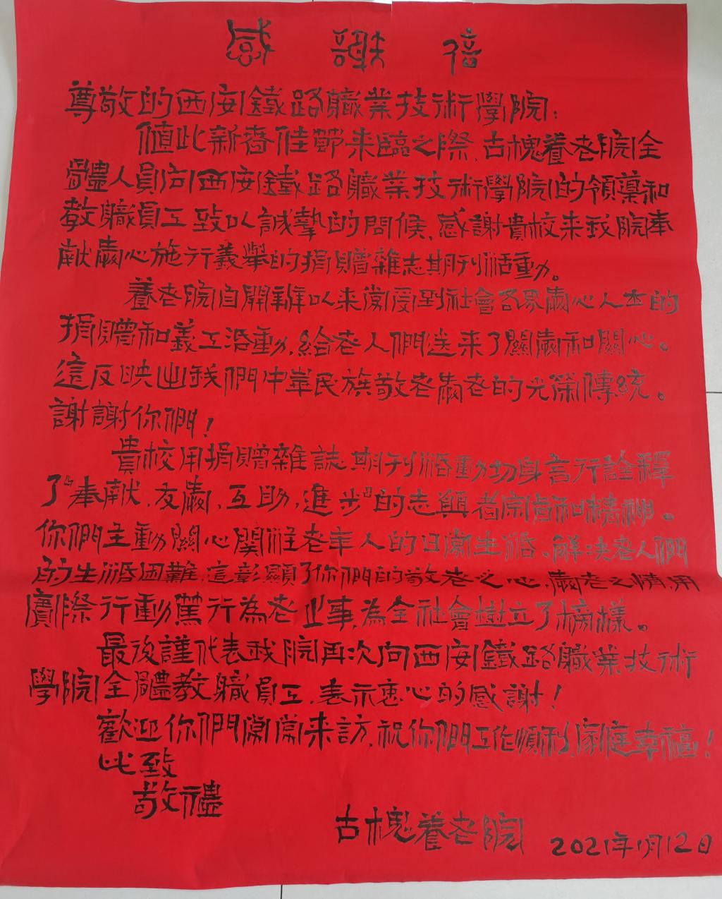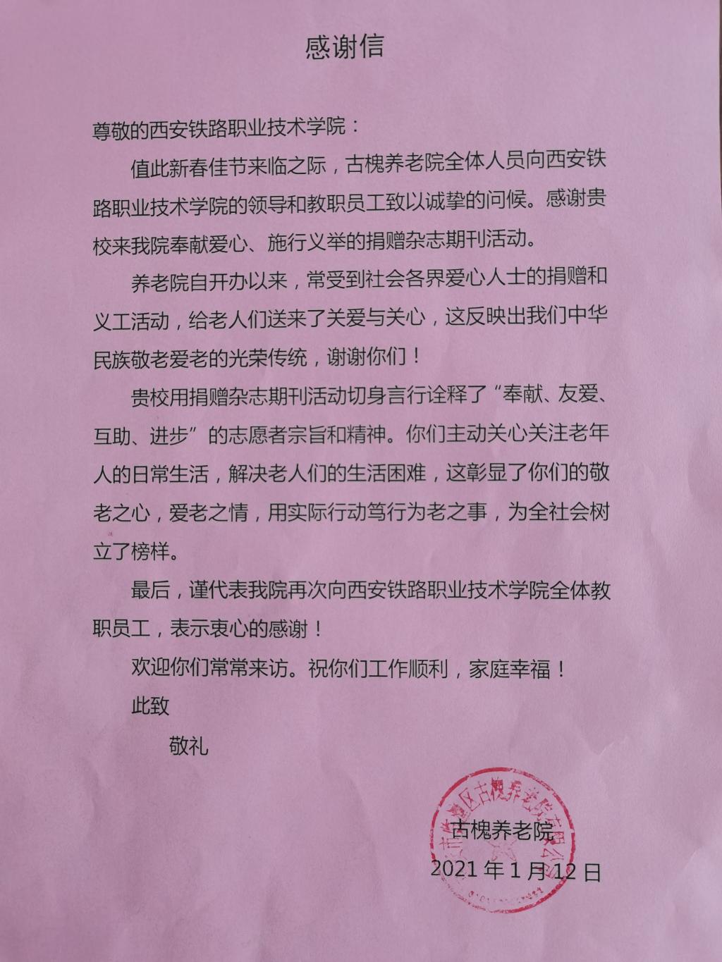 尊老爱幼是中华民族传统美德,为了弘扬尊老、敬老、爱老、助老这一美德,发挥高校图书馆社会服务职能,进一步充实老年人的生活状态,用实际行动提升老年人的幸福感、获得感,实现“老有所养、老有所乐”。值此新春佳节之际,纽约国际官网图书馆向临潼古槐养老院捐赠期刊。