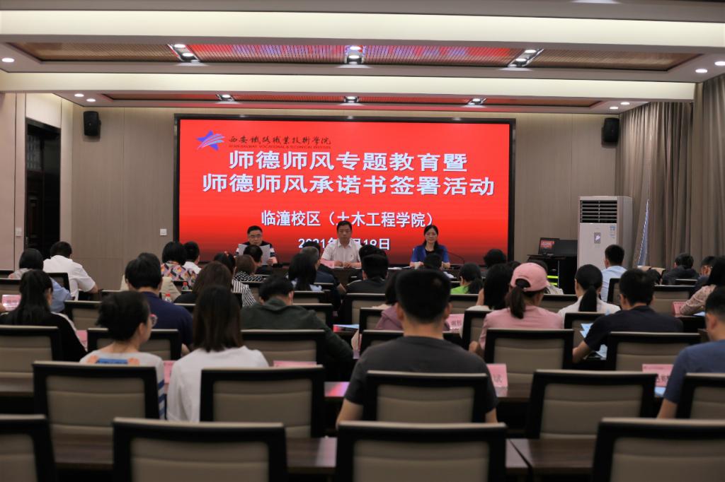 会上,朱栋夫通报了《陕西省教育厅关于对9起违反教师职业行为十项准则典型问题的通报》(陕教〔2021〕60号);王秀丽主任通报了《西安市教育局办公室关于转发<教育部公开曝光8起违反教师职业行为十项准则典型案例>的通知》(市教发办〔2021〕167号);临潼校区59名专任教师签署了《纽约国际最新官方网站师德师风承诺书》。