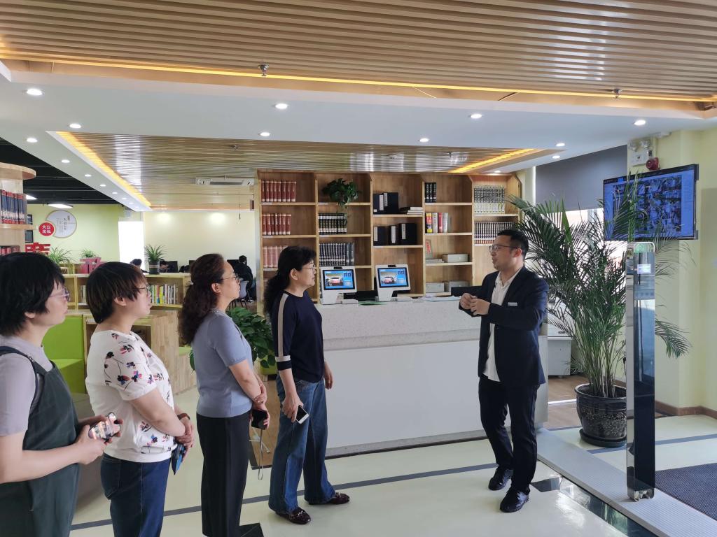 在陕西职业技术学院张骞教师的带领下,参观了贵馆大数据展示平台、人脸识别系统、多功能报告厅、畅读书廊、茶吧区、文化墙等区域,随后对分布在电子信息工程学院(鼎力产业学院)、行政楼、宿舍楼的校园读书角进行实地观摩。通过参观,随行老师感触颇深,大家对陕职院图书馆“书随人走、座随书走、人座合一”的理念及管理方式赞不绝口。
