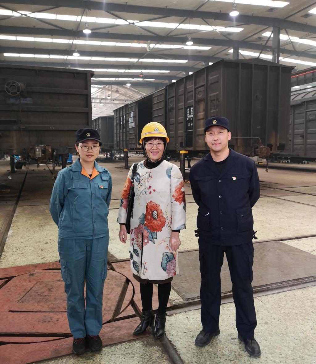 11月8日,牵引动力学院党总支书记和晋秦、辅导员肖贤赴中国铁路郑州局集团有限公司郑州北车辆段走访我院优秀毕业生党员王雅芸。