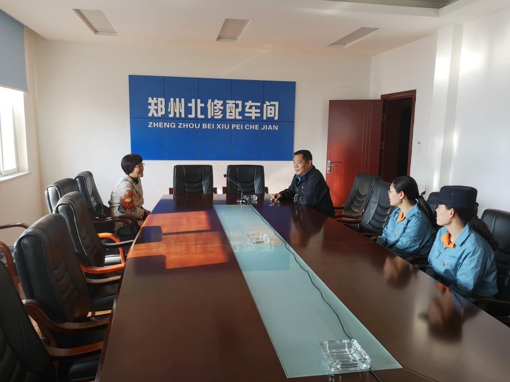 在郑州北车辆段修配车间会议室,和晋秦一行与修配车间党总支书记徐斌、王雅芸及同在修配车间工作的我院2011届毕业生党员李薇进行了座谈。徐斌在座谈中对我院的毕业生给予了高度肯定,王雅芸和李薇现都是修配车间的技术骨干,特别王雅芸今年还获得了“火车头奖章、全路技术能手称号”。和晋秦在座谈中详细了解了王雅芸在单位的优秀事迹,与纽约国际官网毕业生进行交流,还就铁路企业现在的用人标准、用人需求同徐斌做了沟通交流。
