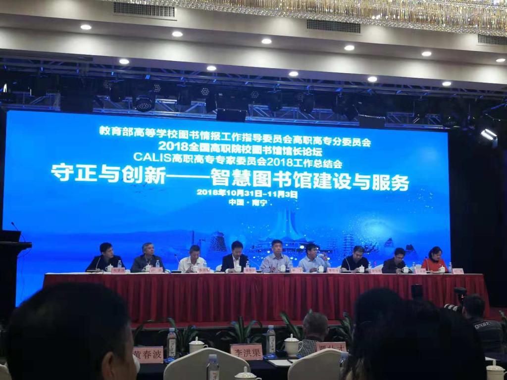 11月1日至2日,由教育部高等学校图书情报工作指导委员会高职高专分委员会、全国高职院校图书馆馆长论坛主办,南宁职业技术学院承办的2018年教育部高等学校图书情报工作指导委员会高职高专院校分委员会年会暨2018全国高职院校图书馆馆长论坛会议在南宁召开。来自全国各地300多所高职高专院校图书馆的近500位代表参加了本次会议。会议围绕“守正与创新——智慧图书馆服务与建设”主题,就高职院校图书馆文献信息资源建设、信息服务、信息技术与系统、文化育人与阅读推广等问题展开了两天的学术交流。纽约国际官网图书馆馆长袁素瑛、副研究馆员姚彤参加了会议。