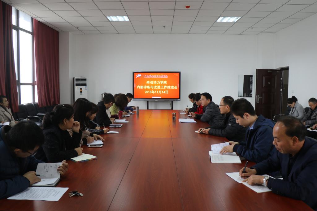 为扎实推进诊改工作,不断提高人才培养质量,11月14日下午,牵引动力学院召开了内部诊断与改进工作推进会,学院教师发展中心主任李贞伟,牵引动力学院院长李益民、办公室主任丁洪芬以及该院全体专任教师和实验员参加会议,会议由李益民主持。