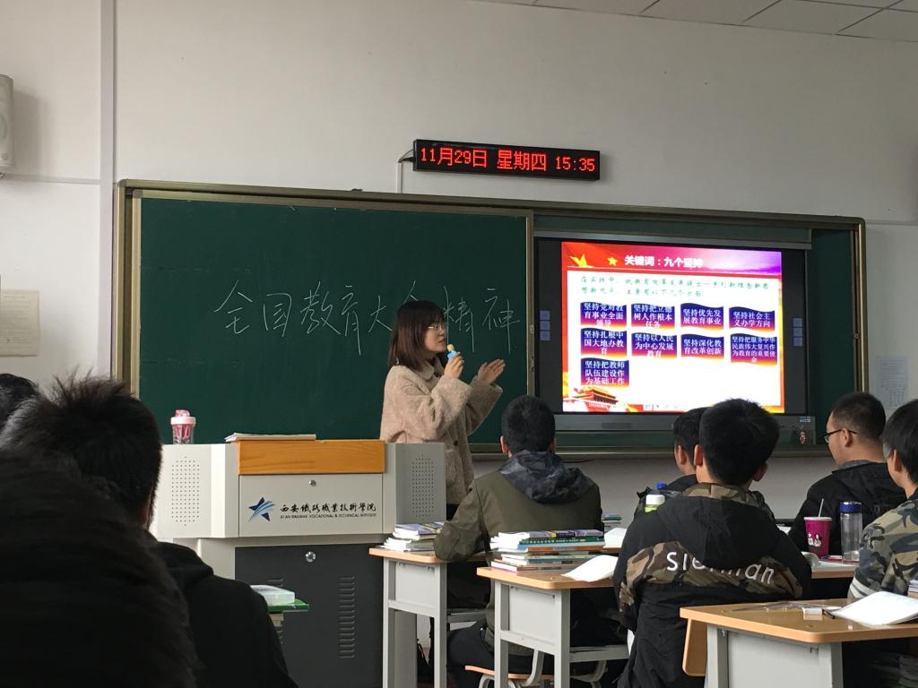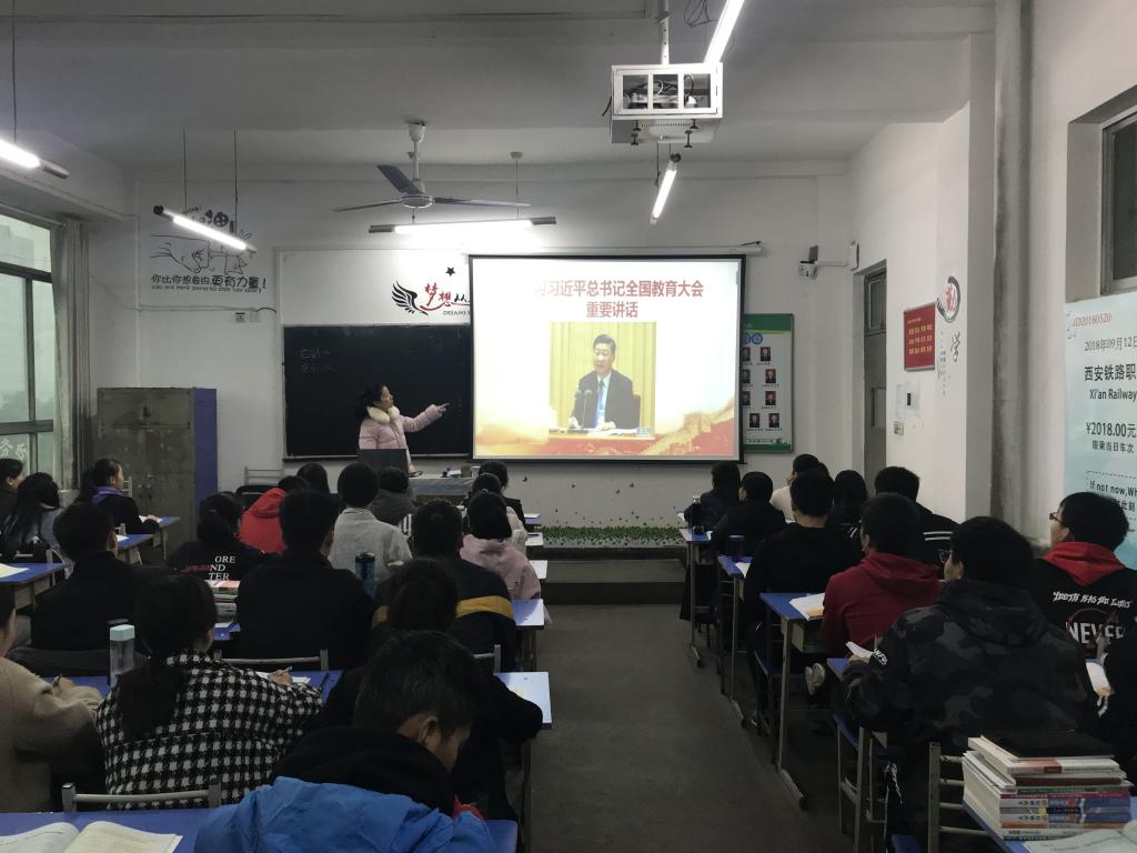 为进一步贯彻落实习近平总书记在全国教育大会上的重要讲话精神,使之进思政课堂、进学生头脑,思政部立即召开贯彻落实全国教育大会精神进课堂专题会议,要求全体专任、校内兼课教师通过思政课堂全面宣讲全国教育大会精神。
