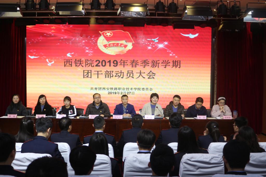 2月27日,院团委在港务校区召开2019年春季新学期团干部动员大会。院团委副书记张治平、团委办公室主任朱叶,临潼校区团委副书记惠敬文、各二级学院团总支书记、团委老师以及来自全院200余名学生团干部代表参加会议。