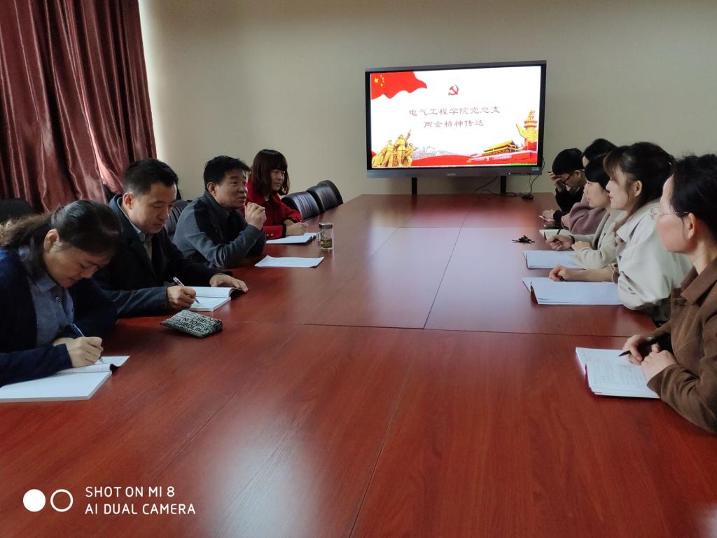 3月21日,电气工程学院党总支在召开会议,党总支书记任建国主持会议并传达了全国两会精神。电气工程学院党总支委员及三个党支部的委员参加了会议。