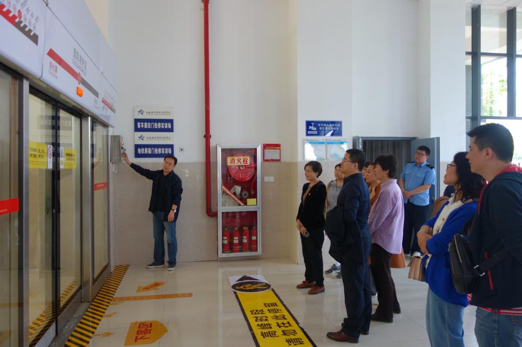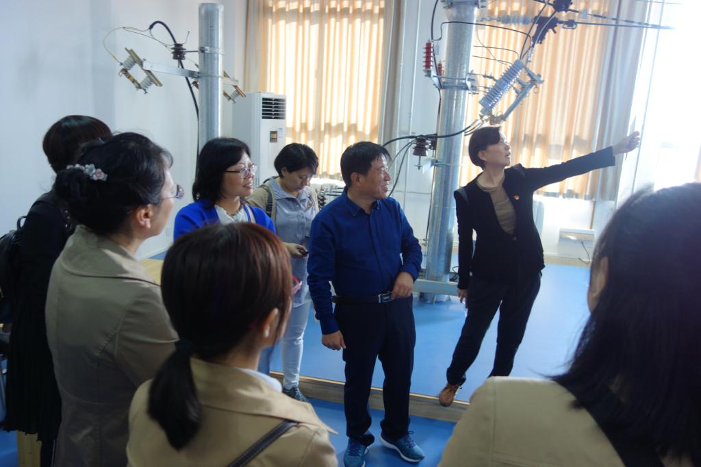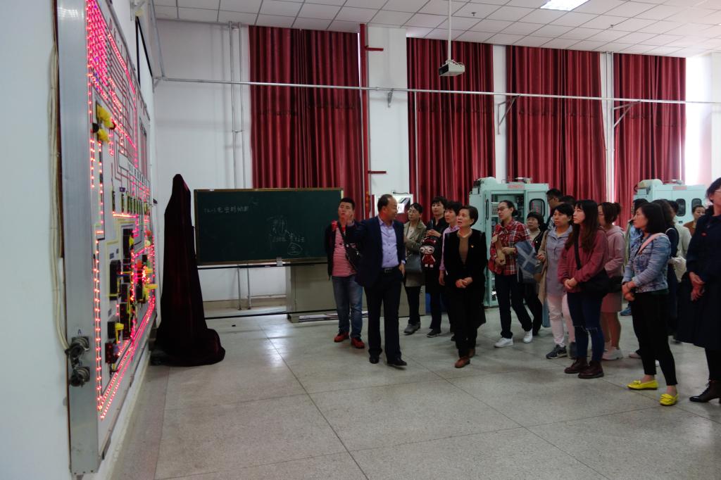 在港务校区,牵引动力学院院长李益民和党总支书记和晋秦对老师们的到来表示热烈欢迎。在牵引动力学院实验员薛振洲老师的带领讲解下,观摩了中央财政支持的铁道机车专业实训基地、机车模拟驾驶、地铁列车仿真驾驶等20余个实训场所。在机电工程学院实验员潘伟的带领下,电子信息学院老师先后观摩了铁路货车检修实训场、铁道车辆转向架检修演练场、地铁屏蔽门检修实训装置等实训室。在国际交通学院院长赵景民、副院长韩发强的带领下,参观了国际交通学院新建成的欧式现代主义风格的国际交流中心,并受到了热情招待。在电气工程学院党总支书记任建国带领下,观摩了铁道供电技术专业省级示范性实训基地、高低压电气实训室、牵引供电仿真实训中心、配电线路实训室和城轨牵引变电所实训室等。电子信息学院院长孙津平以供电段的现场工作经历向大家讲解了部分实训仪器,并指出应加强与兄弟院系的专业交流,学习借鉴更先进的实训室管理经验。教师们深刻意识到作为专业教师不但要具备本专业领域内某个专业方向所必要的专业知识,还要了解行业前沿及发展趋势,需要具有较强的自学能力、实践能力和创新意识,才能在教学实践中积极发挥党员先锋模范作用。