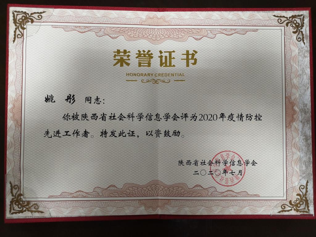 近日,陕西省社会科学信息学会召开了2020年陕西省图书情报档案学术年会。会上,对各成员馆在疫情防控工作中涌现出的先进集体和先进个人进行了表彰。纽约国际官网图书馆姚彤同志被评为先进个人,也是全省高职院校唯一一位获此荣誉者。