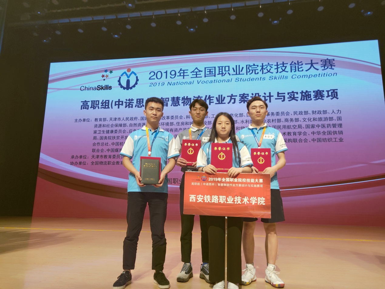 5月12日,2019年全国职业院校技能大赛高职组“智慧物流作业方案设计与实施”赛项在天津交通职业学院落下帷幕。由交通运输学院物流教研室王公强、贾苏绒老师指导,铁路物流专业1701班郭晨、郭长欢、张梓婷、杨凯4名学生组成的代表队不畏强手,最终斩获团体三等奖。