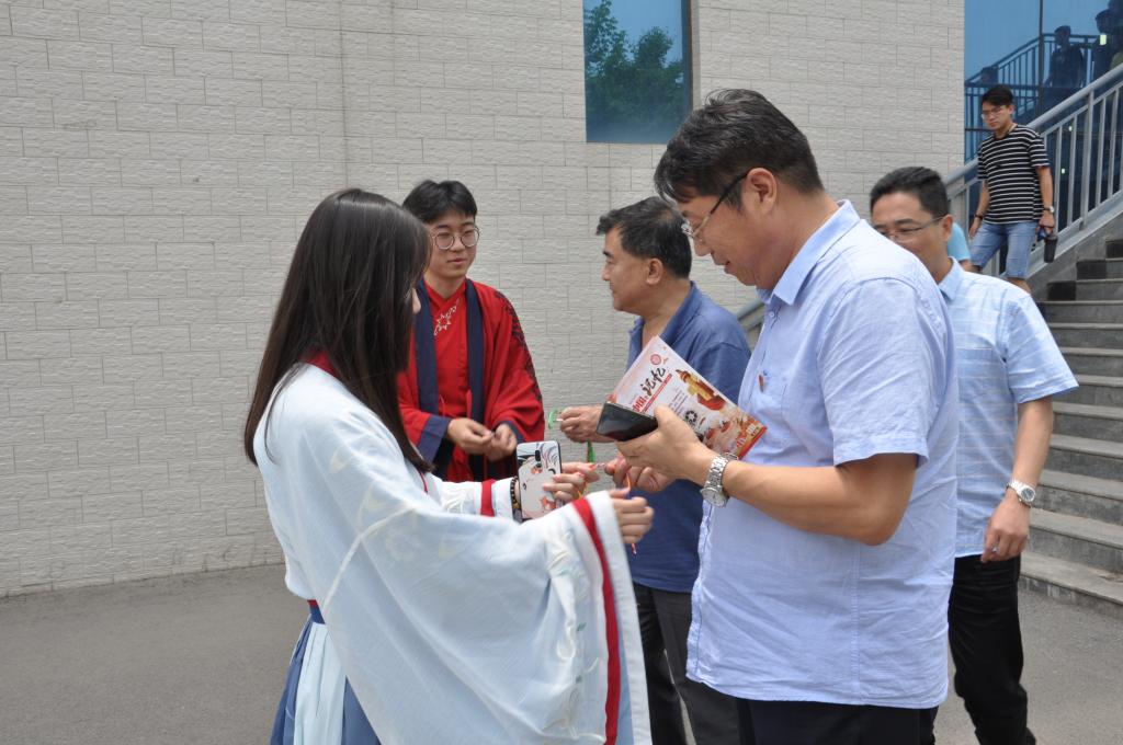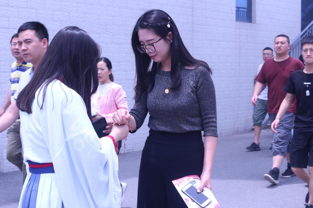 此次活动内容丰富多彩,开展了端午节传统文化有奖竞答、书画展览、猜谜抽奖、汉服展演、端午诗词诵读等活动。活动现场气氛热烈,首先同学们向过往师生发放精心设计的关于端午节传统文化知识的宣传单,并将事先写好的端午节传统文化小问题放在答题箱内,通过有奖竞答的方式,调动了同学们积极性,让同学们进一步了解端午节。与此同时,身着汉服的同学们为过往师生送上象征着吉祥安康的五彩绳和香包,并邀请师生在横幅上写下自己的签名,为大家送上端午安康的祝福。活动最后,同学们朗诵了《史记·屈原列传》节选,向这位伟大爱国诗人表达了缅怀与追念,再现了屈原的拳拳爱国心,弘扬了热爱祖国、热爱人民的伟大爱国主义精神。