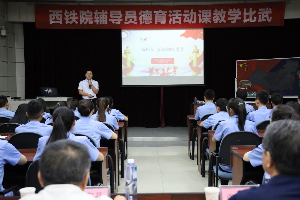 比赛中,电气工程学院郏龙老师以“爱国从我做起”为主题,通过一首《国家》来引发同学们对国与家的思考,启发同学们爱国从自己做起、从小事做起;党委学生工作部吴婧老师以“做新时代中华儿女”为主题,学生们以形式多样的合唱、集体朗诵,主题明确,活泼生动的课堂抒发了同学们的爱国热情;牵引动力学院李博老师以“爱党爱国永铭记 建功立业新时代”为主题,教育同学们要将爱党爱国永远铭记心中,为成为国家栋梁之才努力拼搏;电子信息学院胡士亮老师以“勇担时代使命 做新时代的爱国者”为主题,课堂上通过同学们的剪纸、书法、诵读相结合阐述做理性爱国者,激发同学们的昂扬斗志;机电工程学院杨倩老师以“今天,你要知道怎样爱国”为主题,深入浅出的启示同学们什么是爱国、作为当代大学生应该怎样爱国;土木工程学院胡蓉老师以“厚植爱国主义情怀 做时代新青年”为主题,从爱国知识竞答、快板表演、合诵为入手,告诉同学们要将爱国情怀深植于心,做新时代新青年应该做的事;交通运输学院田乐老师以“心怀家国 志存天下”为主题,使用手机现场投票、发言弹幕等信息化教学手段巧妙的应用到德育活动课中,引导学生在一次次参与中感受新时代家国情怀的真谛。