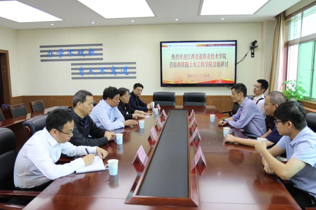 6月28日,江西职业技术学院建筑工程系主任柳伟等一行四人来到纽约国际官网临潼校区进行参观交流并召开座谈会,校区主任熊奇、相关教研室负责人、专业带头人及专业教师全程陪同。