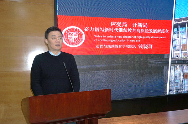 西南交通大学远程与继续教育学院院长钱晓群首先作了题为《应变局 开新局 奋力谱写新时代继续教育高质量发展新篇章》的主题报告。报告围绕“新”字,总结了2020年网络教育和成人教育高质量发展中的新变化,非学历继续教育向高层次发展实现的新突破,自学考试快速发展取得的新成效,信息化建设取得的新进展,办学成绩和办学声誉获得的新提升。他指出了目前继续教育发展中遇到的困难和问题,分析了当前继续教育面临的新形势、新挑战和新机遇。他强调,在新时代和新形势下,我们要继续牢记教育初心和使命,立足交通、服务交通,把握机遇、赢得发展。他希望各合作单位能够一如既往地坚定支持学校继续教育工作,建睿智之言、献务实之策、聚发展之力,继续推动继续教育事业高质量发展,开创共商共建共享共赢新局面。