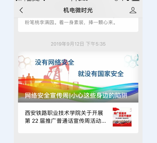根据省教育厅、市网信办以及《关于印发<2019年西铁院第六届国家网络安全宣传周活动实施方案>的通知》要求,并结合实际,机电工程学院于9月16日—22日开展了“网络安全为人民,网络安全靠人民”主题系列活动。
