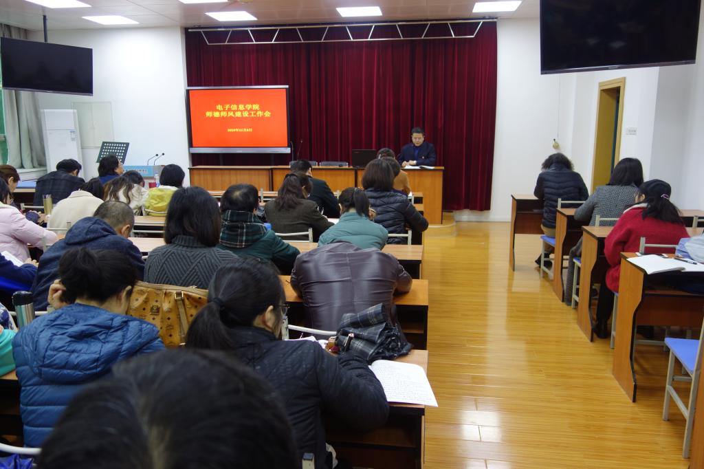 11月6日,电子信息学院召开师德师风建设工作会议,组织全体教职工开展师德师风专题教育活动。活动由该院党总支书记张伟敏主持。
