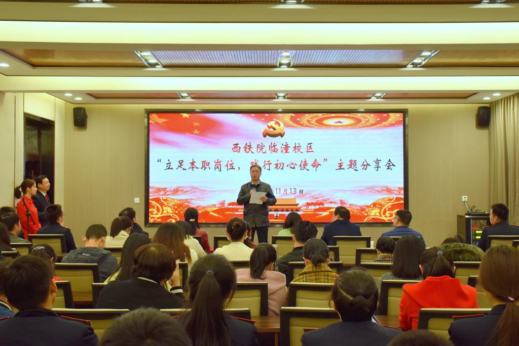 为深入推进“不忘初心、牢记使命”主题教育,贯彻落实学院“五学五比五提升”活动,大力宣传党员干部身边先进典型,营造身边有榜样、学习有标杆、追赶有方向的浓厚氛围,11月13日下午,临潼校区党总支举办了一场“立足本职岗位,践行初心使命”主题分享会,校区领导、全体党员和师生代表等100余人参加了活动。学院党委组织部组织科科长韩臻受邀前往活动现场观摩指导。