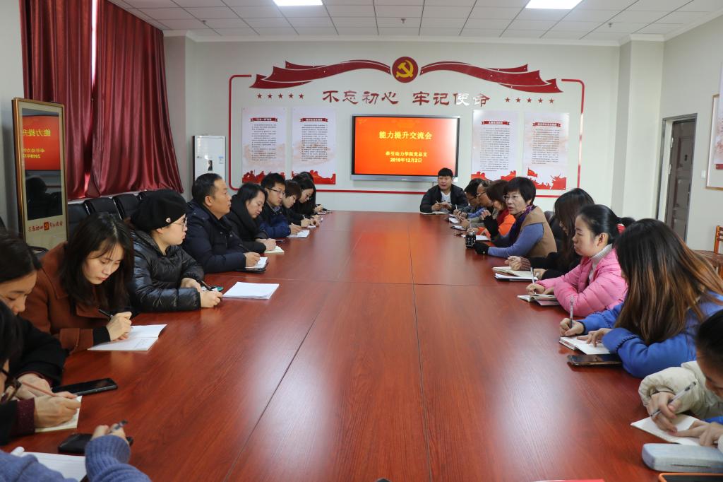 为进一步贯彻学院内涵建设工作推进会精神,加强辅导员和班主任的队伍建设,提升学生管理工作的能力和水平,12月2日牵引动力学院党总支召开能力提升交流会。牵引动学院全体辅导员、专职班主任参加本次交流会。
