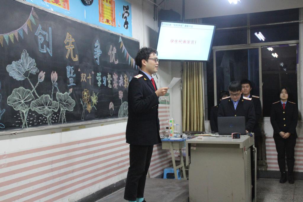 在接到学院通知后,各个班级早早开始筹备大会。22日晚,主题鲜明的黑板报配上多媒体音效,营造出浓厚的表彰氛围。晚7点,各班表彰大会准时开始,由主持人宣读本班本学期在创先争优暨双十学习竞赛中获奖班级和学生名单,由仵崇智为获奖班级颁发优秀班集体奖牌,由孟永辉及各年级组长、辅导员、班主任老师为获奖同学颁发个人奖。