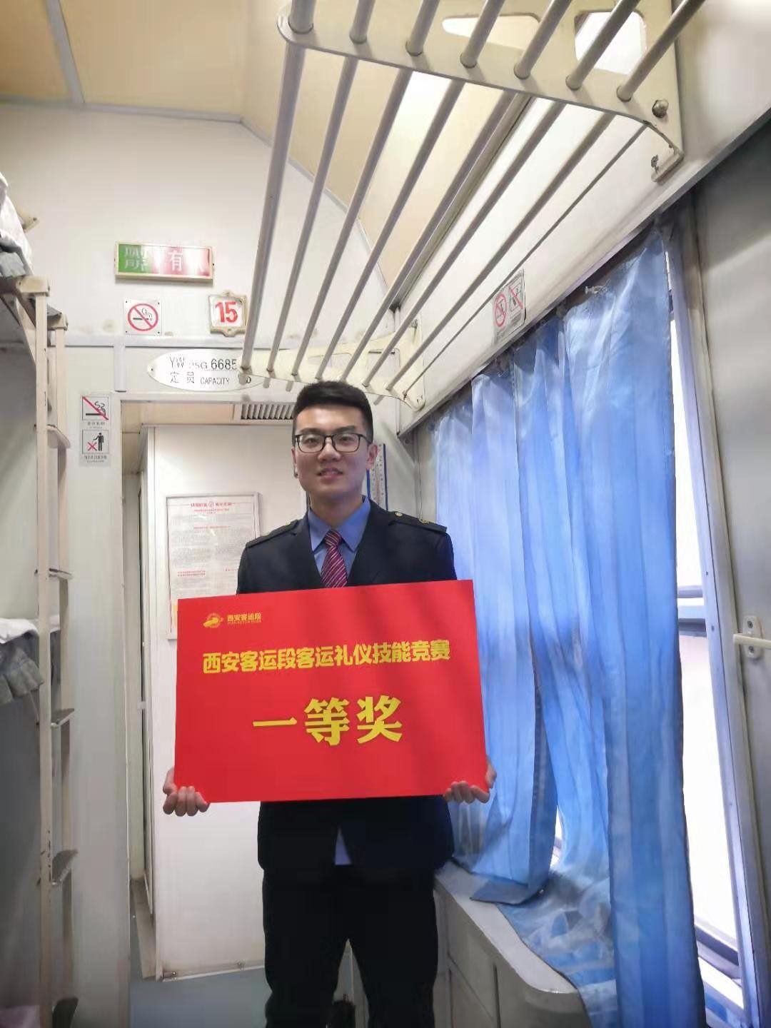 在西安客运段12月中旬举办的客运礼仪技能竞赛汇演中,纽约国际官网动车组驾驶1702班的罗猛同学带领他们的团队脱颖而出,荣获一等奖。