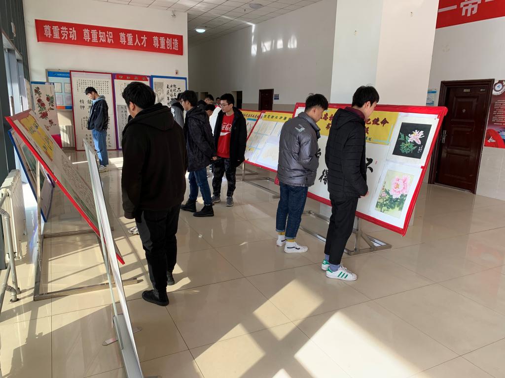 12月27日,机关后勤党总支党群支部书记张爱民,带领支部党员蒋博文、王臻一行参观师生书画展,并给予了高度肯定。