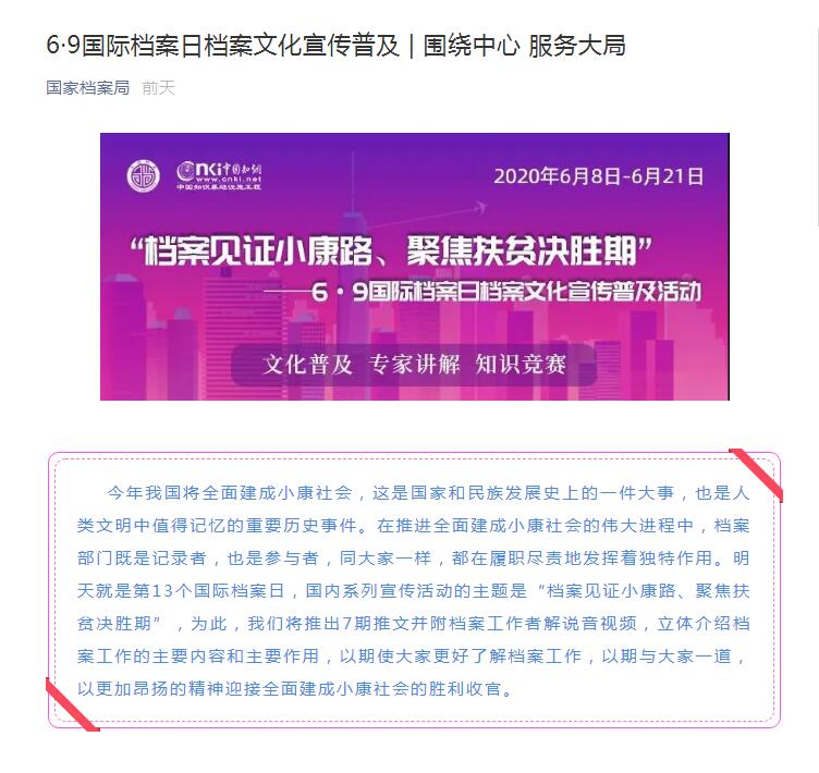 通过线上宣传活动,以文字、照片、视频的方式展示了档案工作在脱贫攻坚中的独特作用与贡献,让纽约国际官网师生认识档案价值、感受档案魅力,了解档案在服务社会、服务民生中的积极作用。
