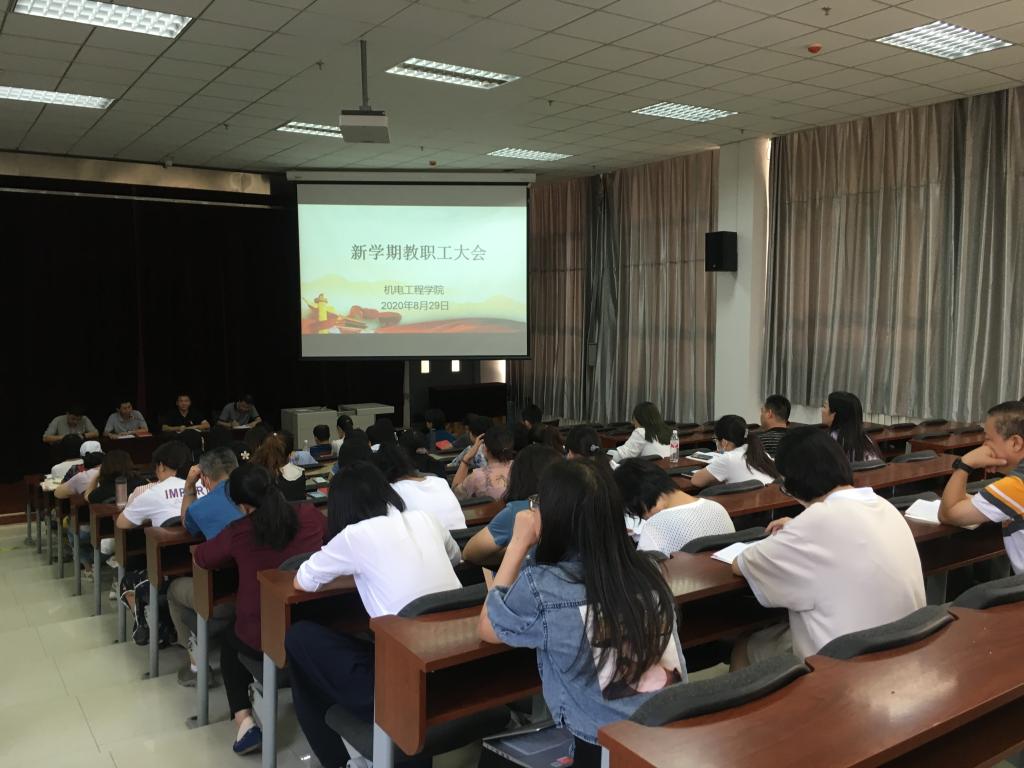 为明确学院新学期工作要求,厘清思路,进一步增强全体教职工追赶超越使命感、紧迫感,8月29日下午,机电工程学院组织召开了新学期全体教职工大会。会议由办公室主任邵泽宽主持。