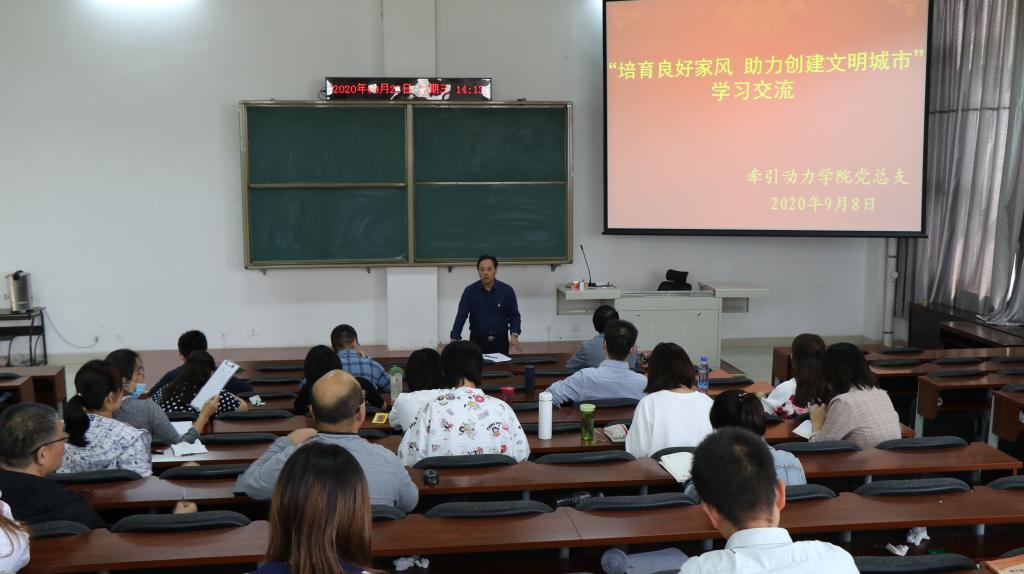 近期,牵引动力学院党总支根据上级的部署安排,通过组织“三会一课”、主题党日系列活动,进行“弘扬延安精神、净化政治生态”专题学习,开展“培育良好家风家教 助力创建文明城市”活动、“第三个纪律教育学习宣传月”活动。学院党总支书记李贞伟主持了上述学习和活动,并作了主旨发言。学院党总支副书记、院长李益民以及全体党员干部参加了学习和活动。