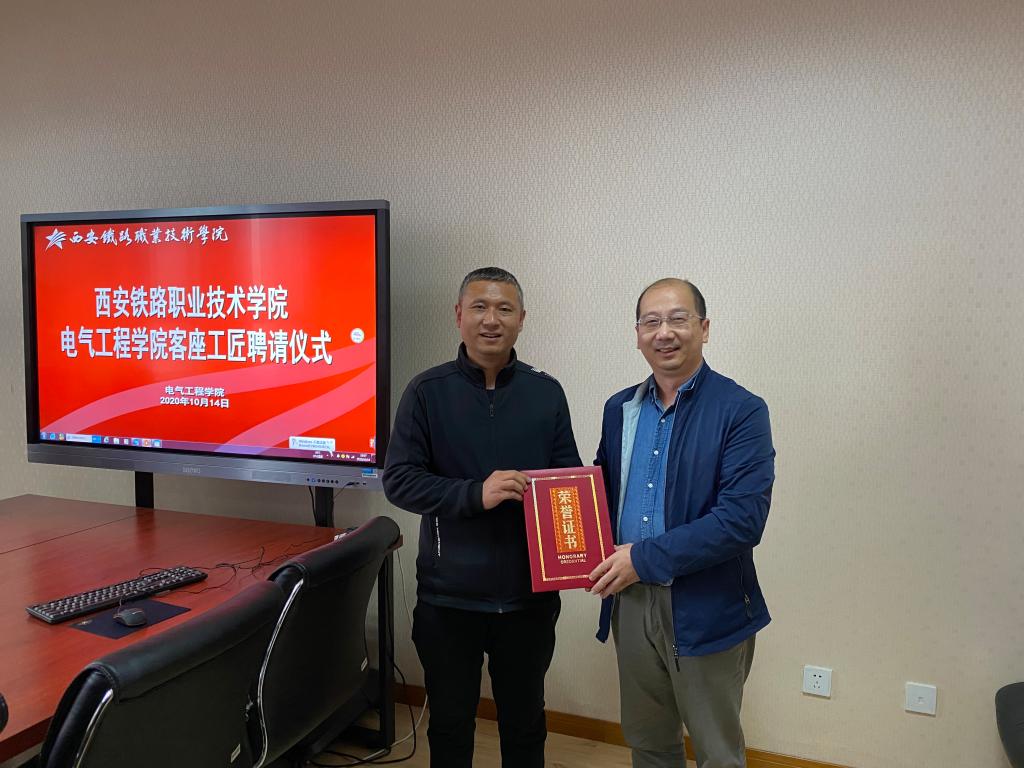 西铁局参赛团队在纽约国际官网集训期间,电气工程学院组织铁道供电技术专业教师与竞赛团队的教练员、纽约国际官网毕业生选手进行了座谈交流,对专业建设、人才培养、实训室建设和校企合作工作进行了研讨,并聘请接触网工种竞赛团队总教练、中铁总公司“铁路工匠”曹军明(宝鸡供电段高级技师,享受国务院政府特殊津贴的铁路高技能人才)为纽约国际官网“客座工匠”。